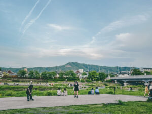 日光浴する鴨川ランナー、ギターを弾くお兄ちゃん、弦楽カルテット集団、ピクニックする女の子たち…。