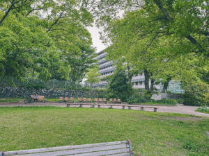 進んでいくと、背中がくるんとまるまったベンチ、ひと席ごとに区切られたベンチ…色んなベンチが乱立している。