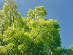 初夏の光を浴びながら、涼しい風に青もみじが揺れる。