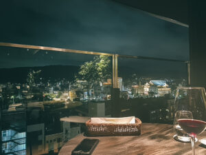 ここの真髄は、なんと言っても最上階の8階からのぞむ東山。