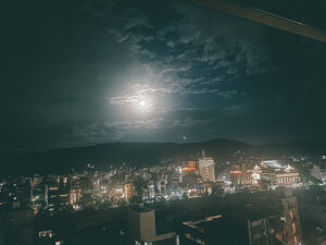 この夜は東山はいつも以上に優しく見えたし、南座は、全然違う輝きを見せた。月は、いつもより早く、私の頭上を西へ西へと動いていった気がした。
