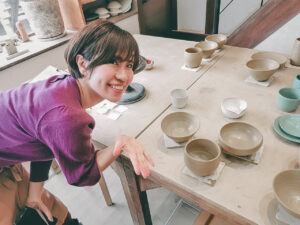 私が体験させてもらったのは、ろくろ体験と手びねり。ろくろ体験ではマグカップとご飯茶碗、小鉢を作らせてもらい、手びねりではお皿を作らせてもらった。