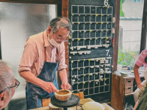 佐藤さんはいつも私を優しく出迎えてくれる。千葉出身で、京都の陶⼯高等技術専門を出た女性だ。