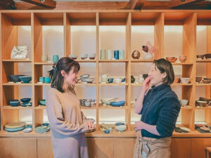 ここではTOKINOHAのアイテムも買えるし、ろくろ体験や手捻り体験、お教室通いもできる。