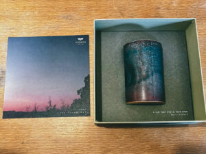 あと行くたびにこれまた絶対手にとるのが、手のひらの形に馴染むマグ。親指部分が凹んでて、つい持ちたくなるこのフォルムよ。これもやっぱり、東山の夜明けみたいな藍がいい。釉薬のかかり方が一点一点違うから、同じ商品でも違う商品なのかってレベルで色合いが変わるし、あげたい人のイメージで選ぶから毎回楽しい。デスクワークが多い人にプレゼントするのが趣味だ。