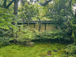 奥には東山の借景がチラチラ見えて、もうその東山がすごい近いというか本当に真裏が東山だから、借景というか一体感。