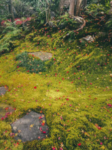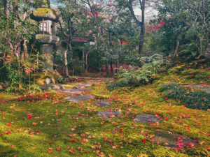 秋の散り紅葉の感じも好き。フカフカの苔との相性も抜群。